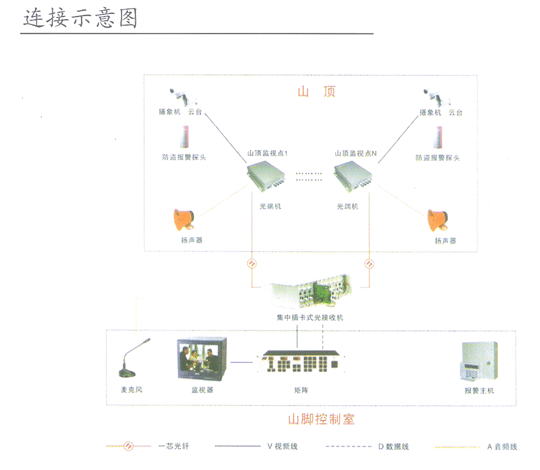 由于在森林防火監(jiān)控系統(tǒng)中每個監(jiān)控點位置分布不規(guī)則,而且與控制室之間的距離較遠,實現(xiàn)視頻、控制數(shù)據(jù)、音頻、報警信號的遠程傳輸,所以在森林防火監(jiān)控系統(tǒng)中采用漢信HS-VADE系列多路視頻、音頻、數(shù)據(jù)、報警光端機進行傳輸,實現(xiàn)山下到山上全方位靈活指揮,同時保證系統(tǒng)的穩(wěn)定性及傳輸效果。